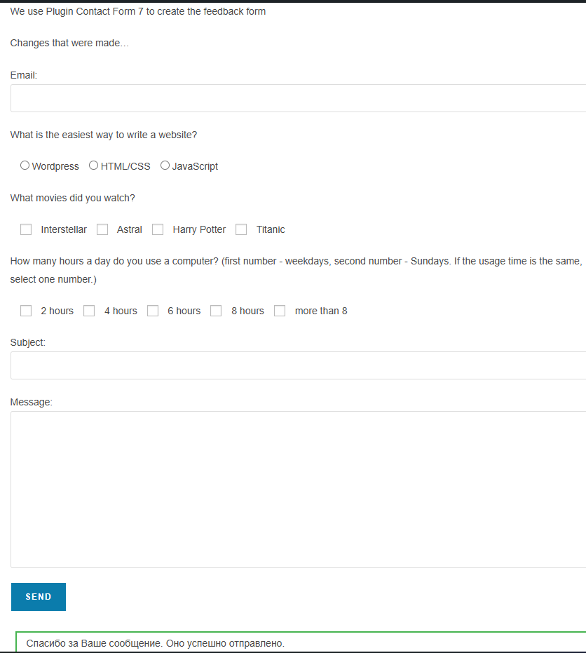 We use Plugin Contact Form 7 to create the feedback form