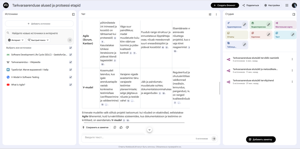 | Koskmudel (Waterfall) | Lineaarne ja järjestikune protsess, kus järgmine etapp algab alles pärast eelmise lõpetamist. Testimine toimub alles arenduse lõpus. | Selge ja ddistsiplineeritud struktuur; lihtne hallata tänu kindlatele verstapostidele. | Väga madal paindlikkus; vigade avastamine hilises faasis on kallis; kliendi tagasiside saadakse alles lõpus. | Projektid, kus nõuded on fikseeritud, selged ja muutumatud. |