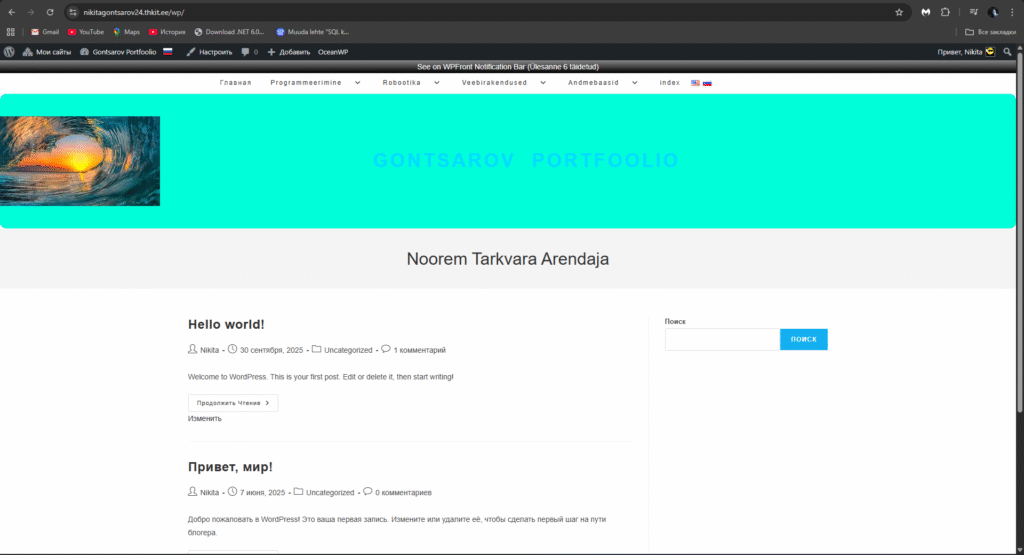 - Paigaldasin ja aktiveerisin plugina WPFront Notification Bar