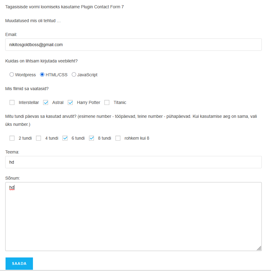 Tagasisisde vormi loomiseks kasutame Plugin Contact Form 7