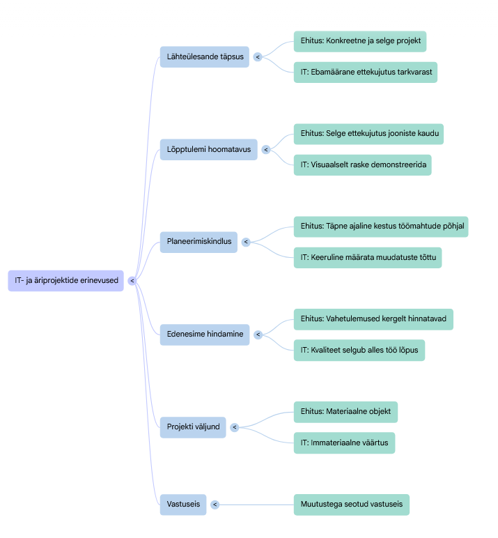 | Omadus | IT-projekt (Arendus) | Äriprojekt (Teostus) |